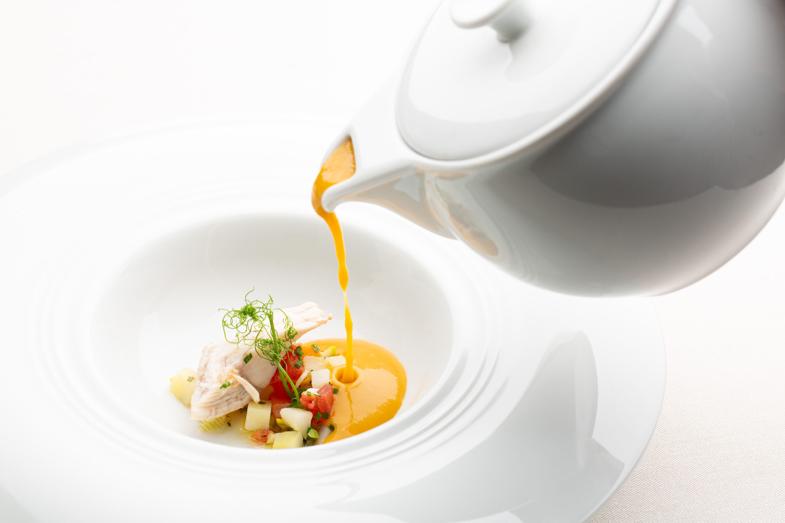 Fish soup, fresh tomato, stonefish broth, white grouper